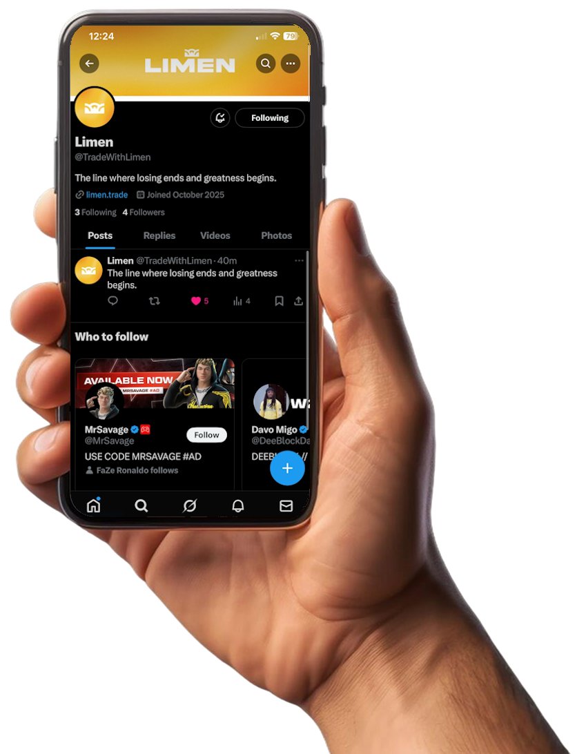 Stay connected with Limen on X for the latest updates, insights, and market perspectives. Get real-time announcements, community highlights, and trading inspiration straight from the source.